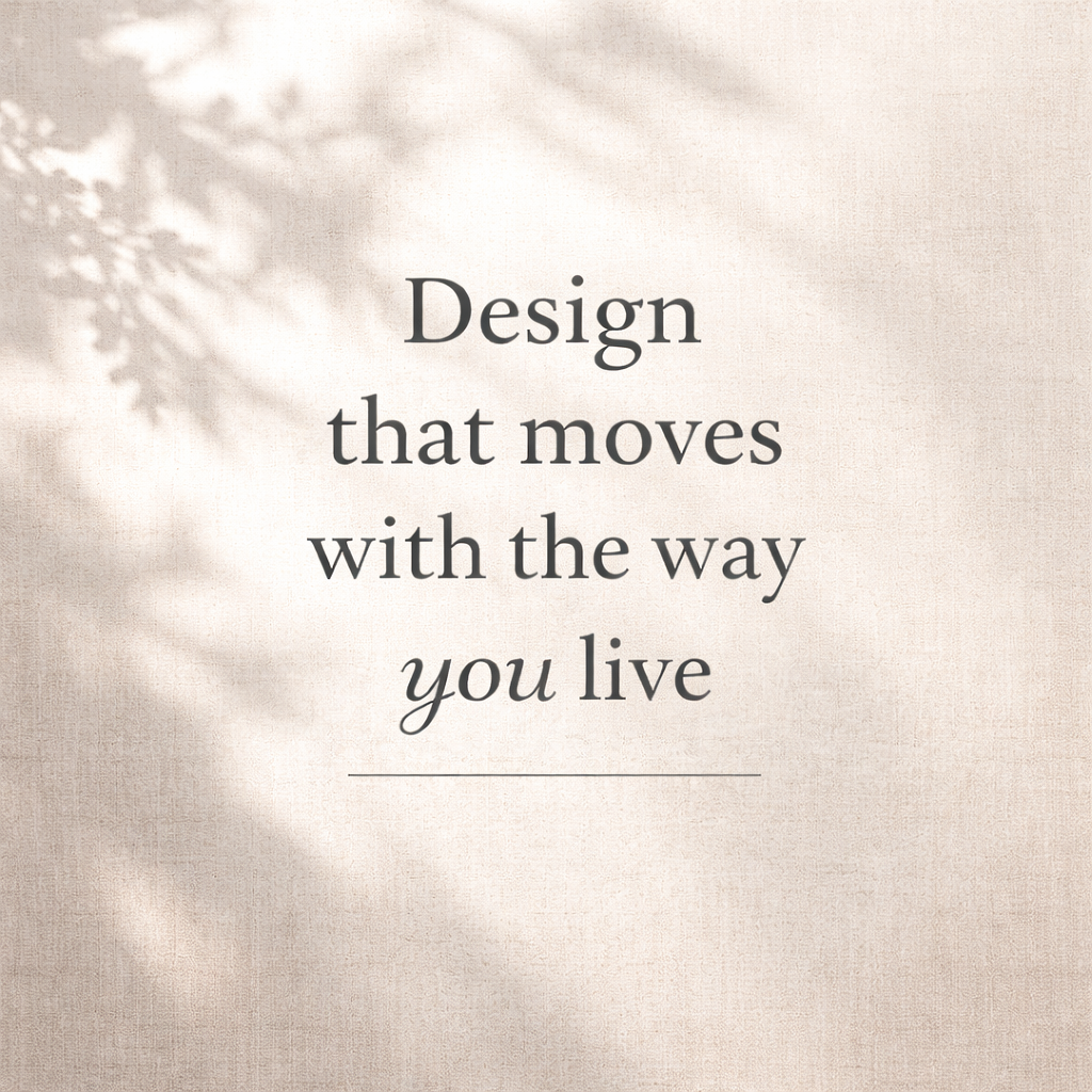 our lifestyle focused methodology centers on real life - your routines, your needs, and your comfort. design should move you and move with you, at your own pace and within your own budget.